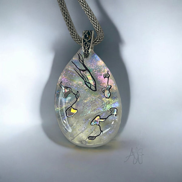 Clear Dichroic Fused Glass Pendant, Handmade, One of a Kind