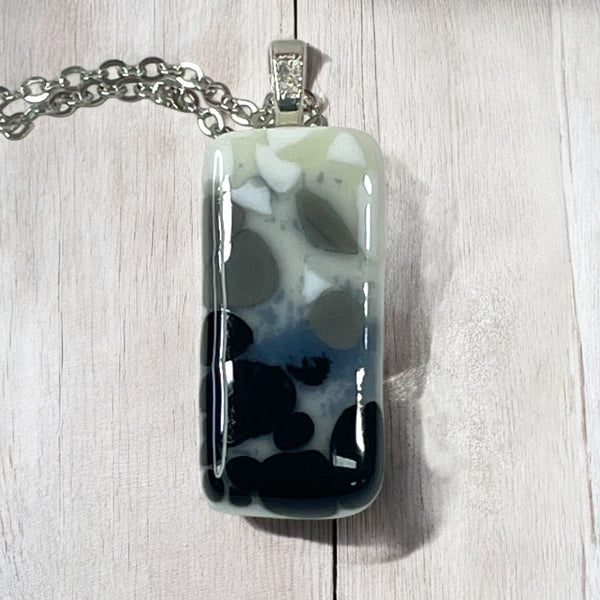 Rectangle Fused Glass Pendant, White, Gray, Black. Handmade, One of a Kind