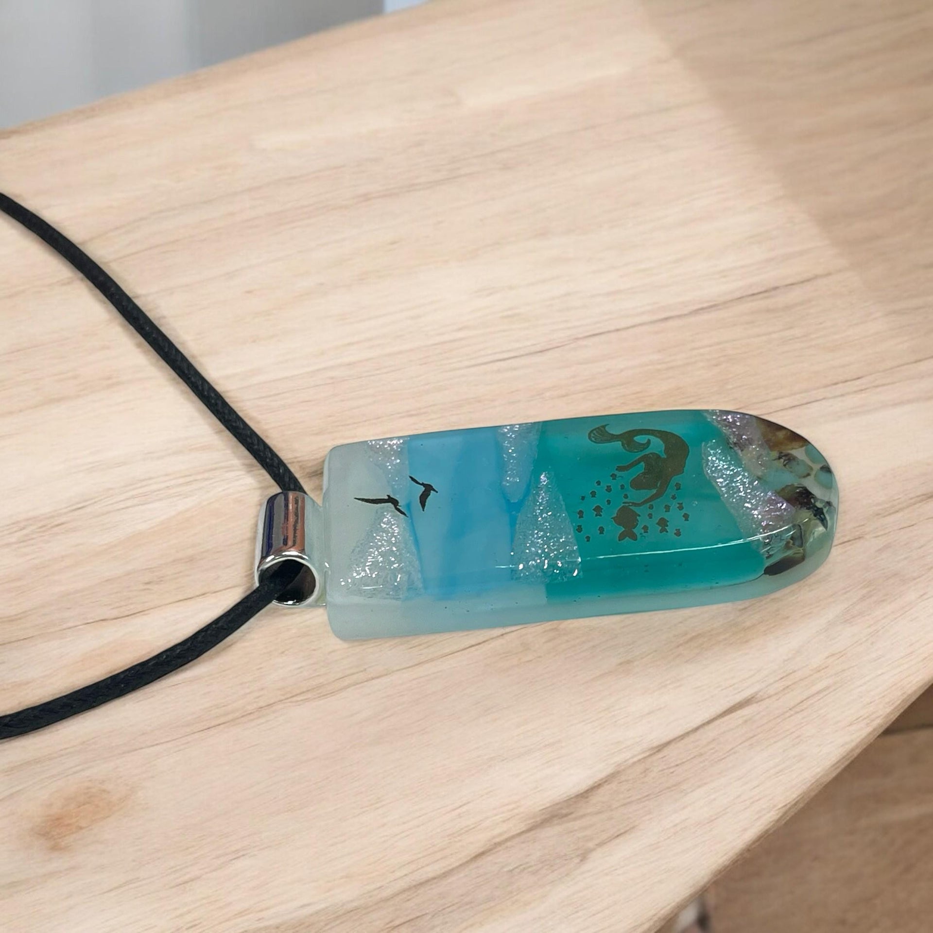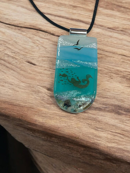 Mermaid, Beach, Pendant, fused glass, one of a kind