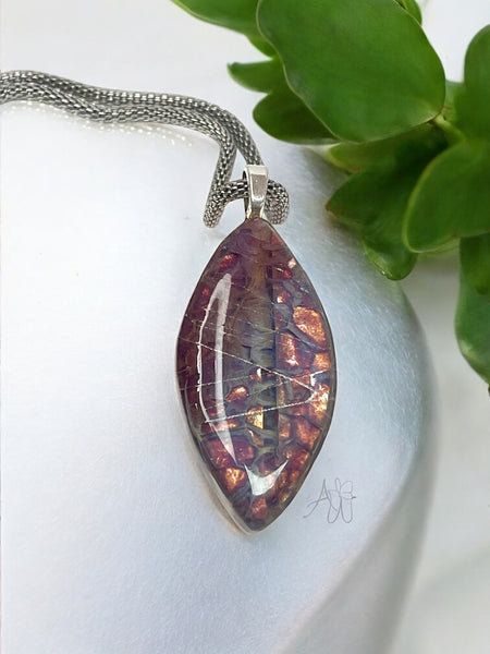 Red & Purple Silver Foil Fused Glass Pendant, Handmade, One of a Kind