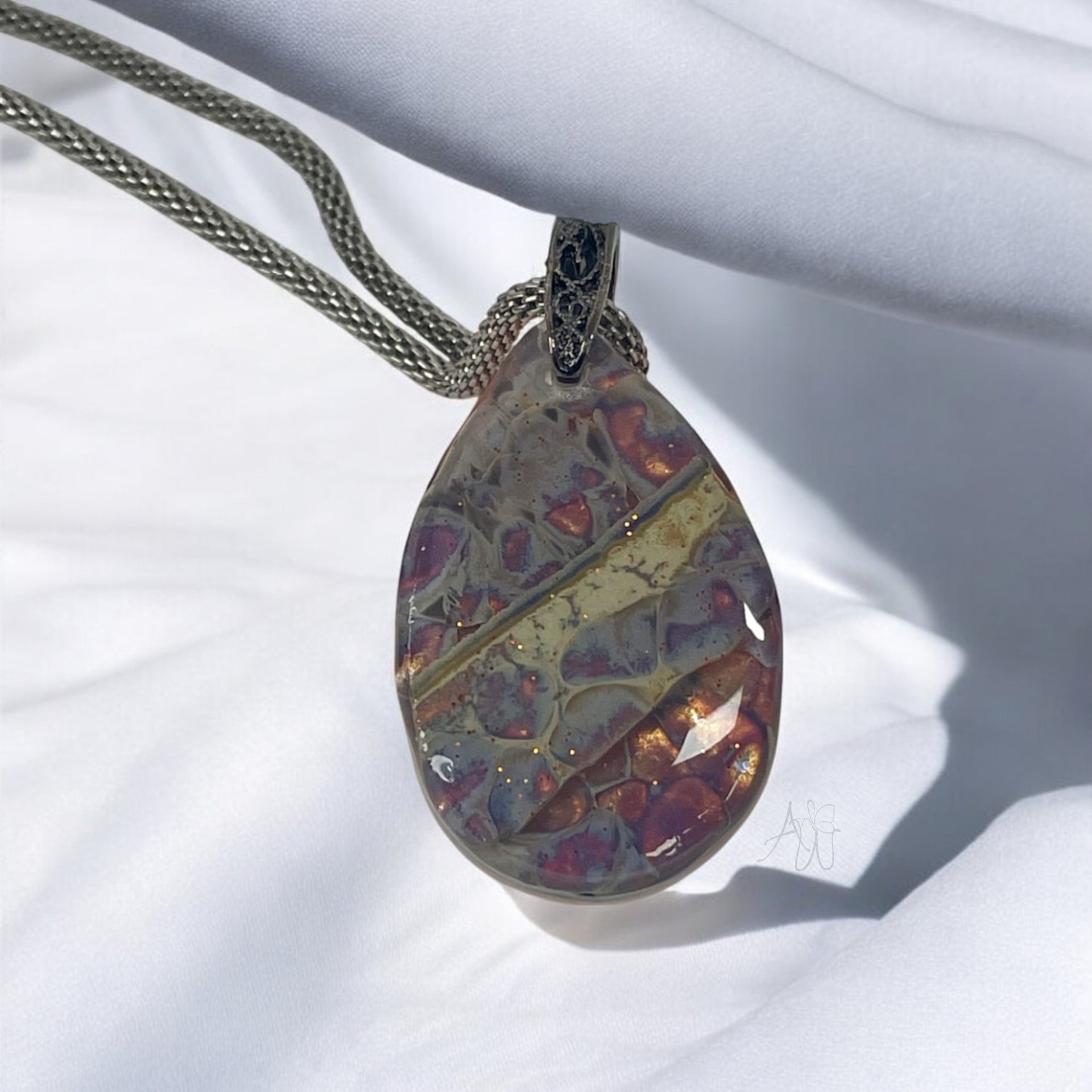 Red & Purple Silver Foil Fused Glass Pendant, Handmade, One of a Kind