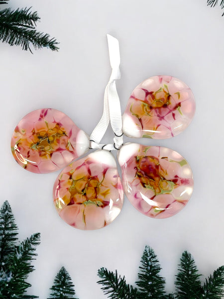 Set of 4 Christmas Ornaments, Fused Glass, Frit Stretch