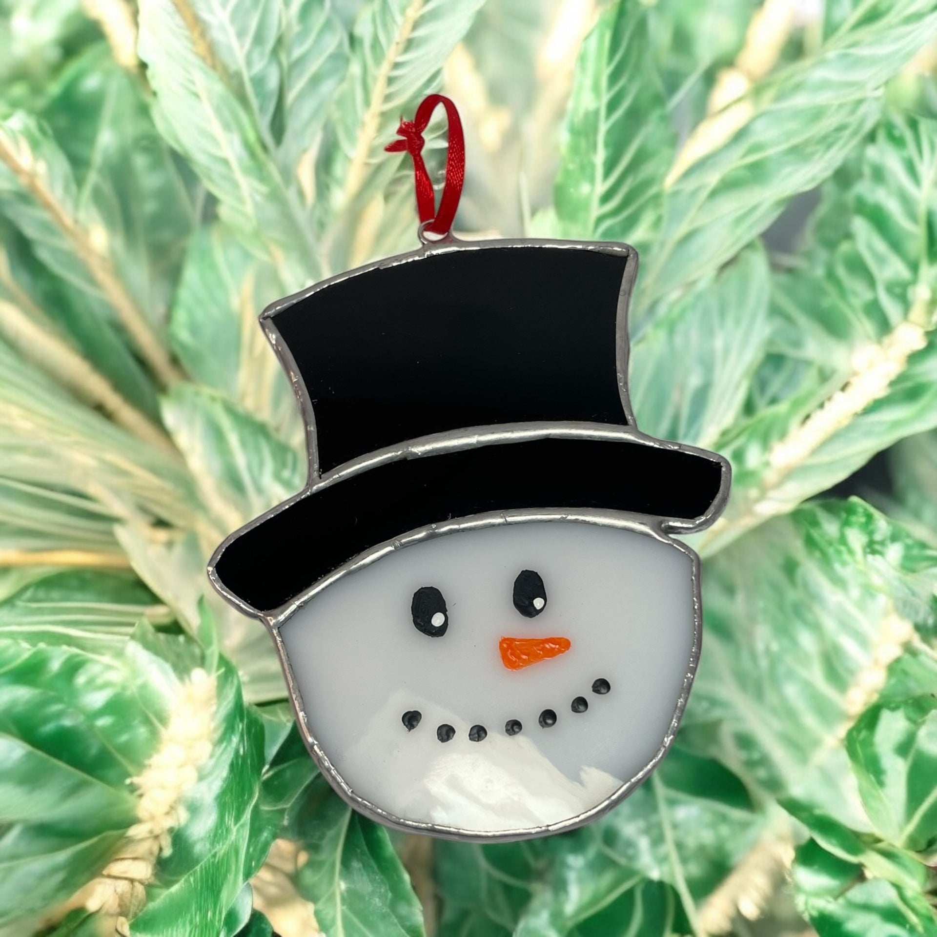 Stained Glass Christmas Snowman Ornament