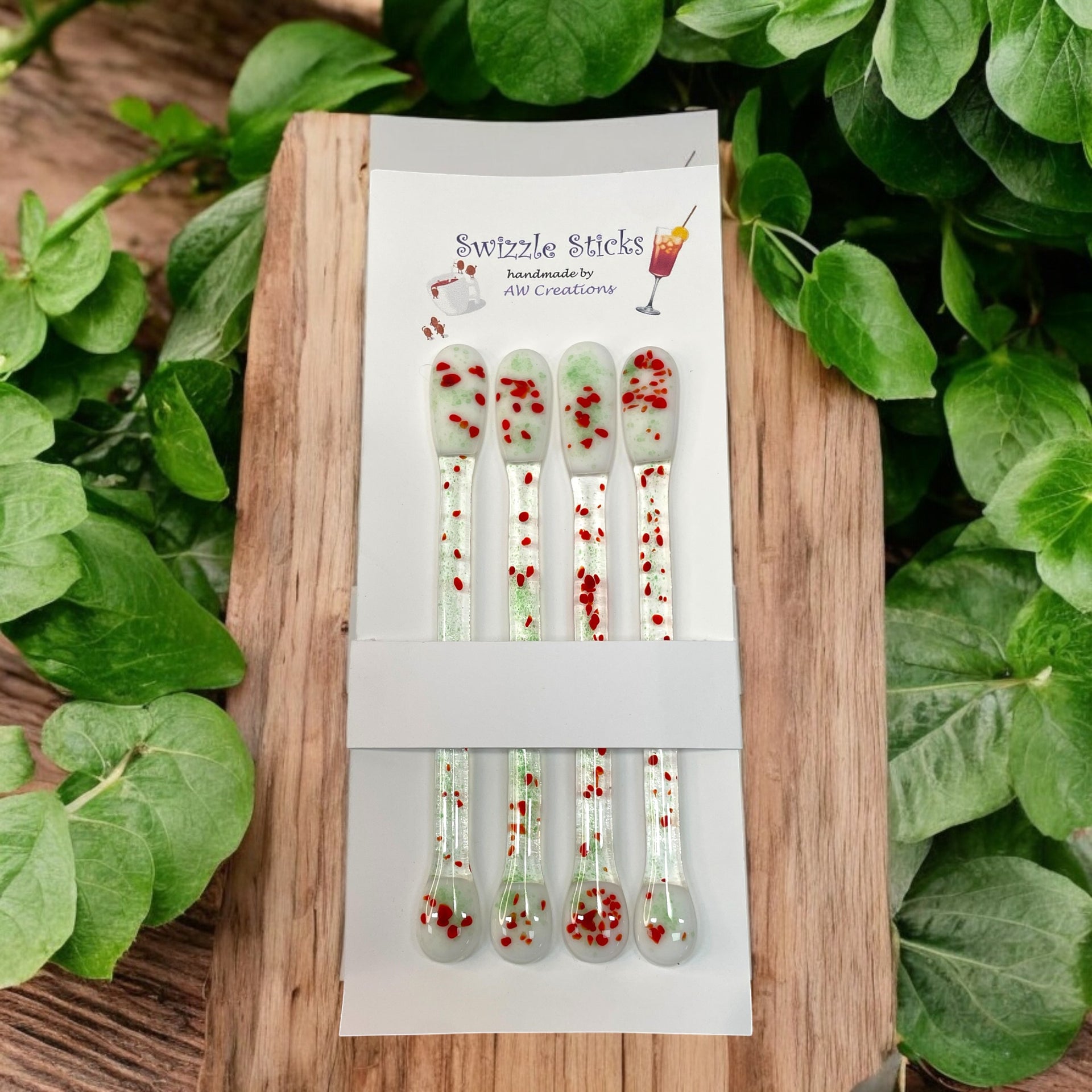 These sticks are all handmade and fired in a glass kiln.  They would make the perfect edition to your drinkware collection or for your bar.  A great gift item for the holidays attached to a favorite beverage of choice.