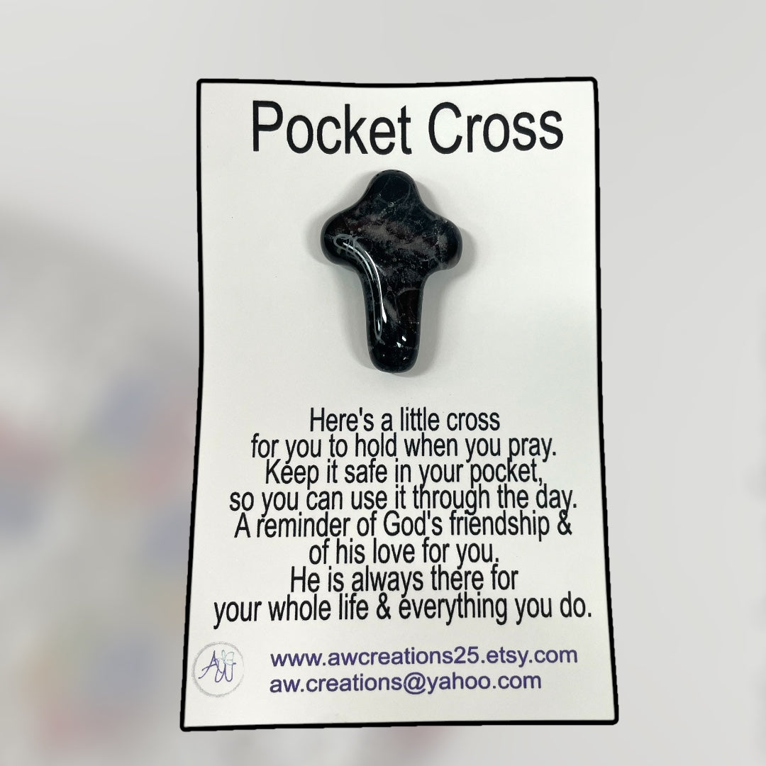 Enhance your spiritual practice with the Pocket Cross, a hand-crafted fused glass gift designed to remind you of your faith on the go. The unique design and quality materials make it a perfect gift for yourself or a loved one. Bring a touch of spirituality wherever you go with the Pocket Cross.